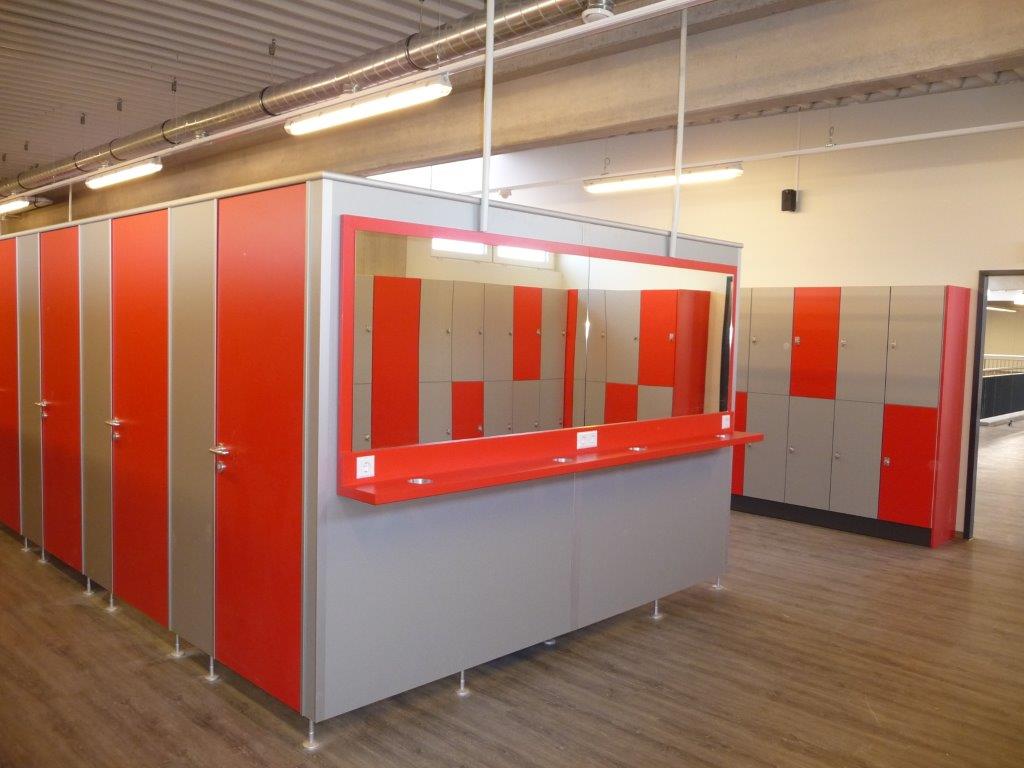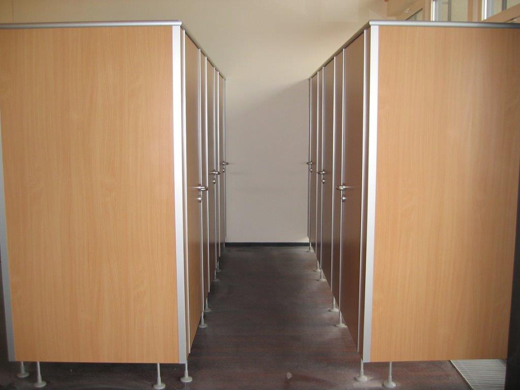 Hochwertige Trennwandsysteme in 13 mm HPL, 28 mm und 40 mm Plattenstärke für Erwachsene und Kinder lieferbar.
