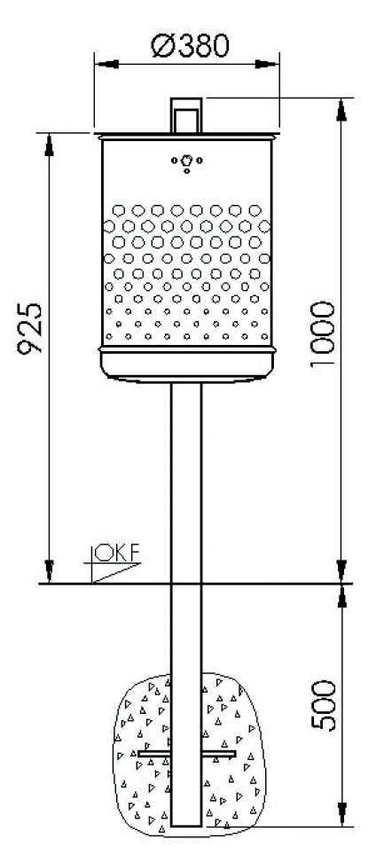 Abfallbehälter mit Pfosten, Inhalt 50 L, zum einbetonieren