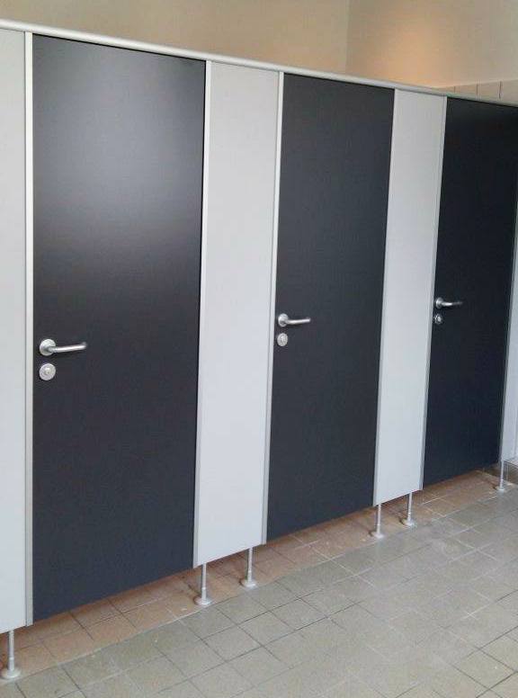 Trennwandanlage mit 28 mm Stärke und extra robuster Oberfläche (HPL beschichtet) für erhöhte Beanspruchung für den Einsatz in Trockenräumen, nicht geeignet für feuchte Umgebungen.