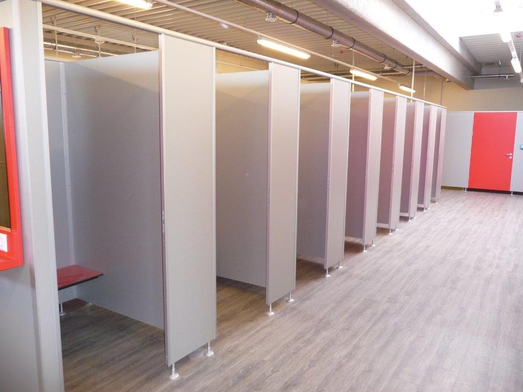 Hochwertige Trennwandsysteme in 13 mm HPL, 28 mm und 40 mm Plattenstärke für Erwachsene und Kinder lieferbar.