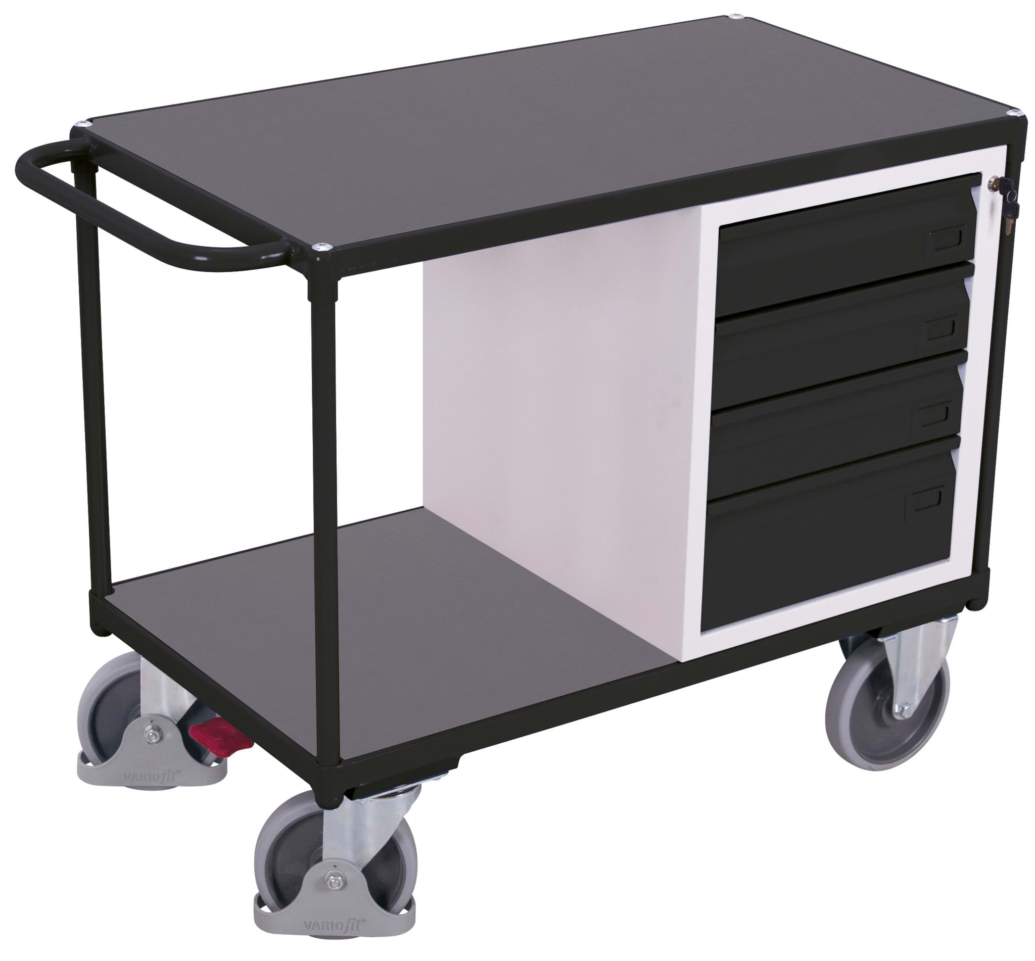 — 1 Schubladenschrank 490 x 600 x 600 mm BxTxH, mit 4 rollengelagerten Schubladen (3 x 95 und 1 x 155 mm hoch) verschliessbar mittels Zentralschliessung über Einzelauszugssperre Traglast je Schublade: 25 kg